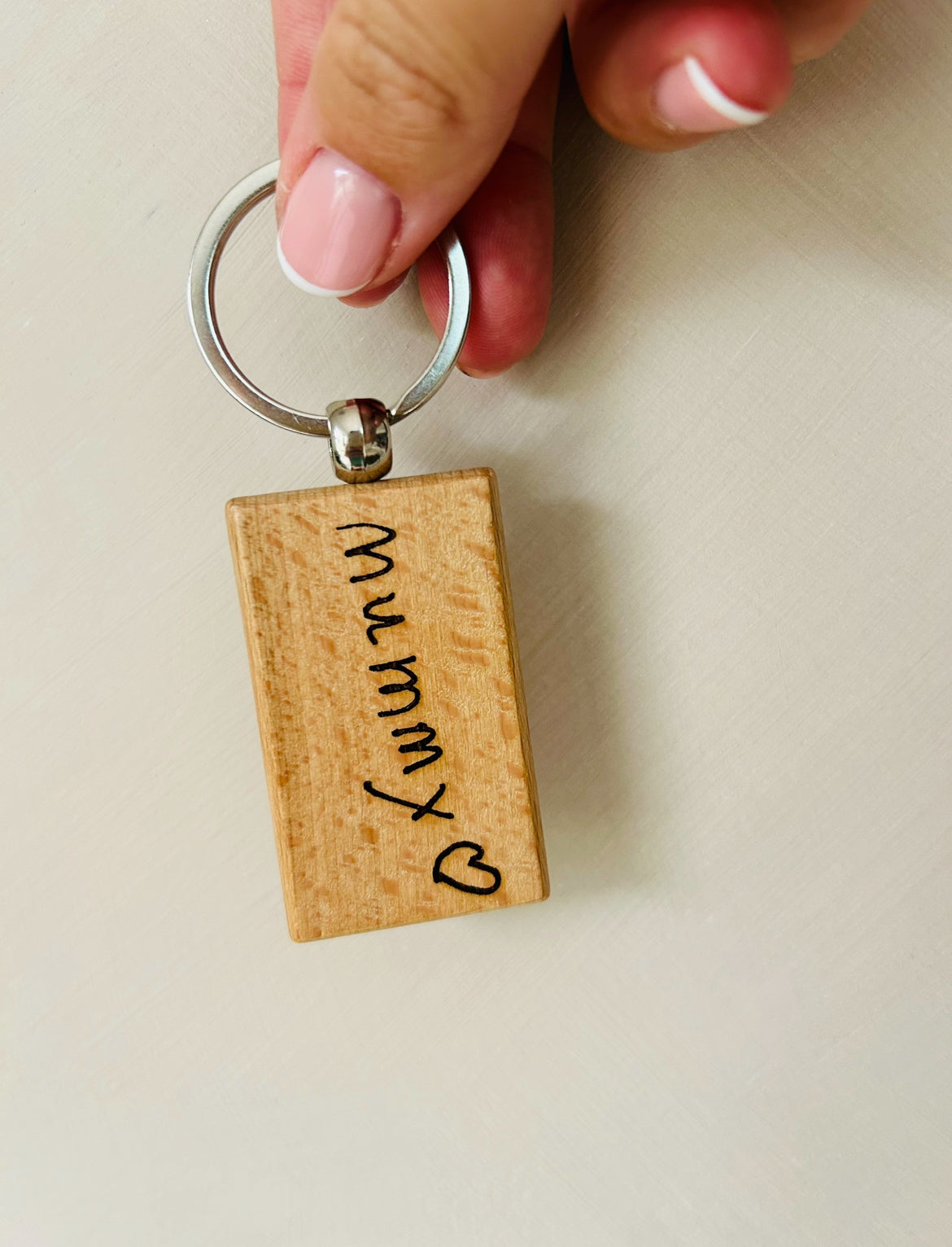 Send me your little one’s handwriting or perhaps a little doodle to have engraved on our wooden keyrings.